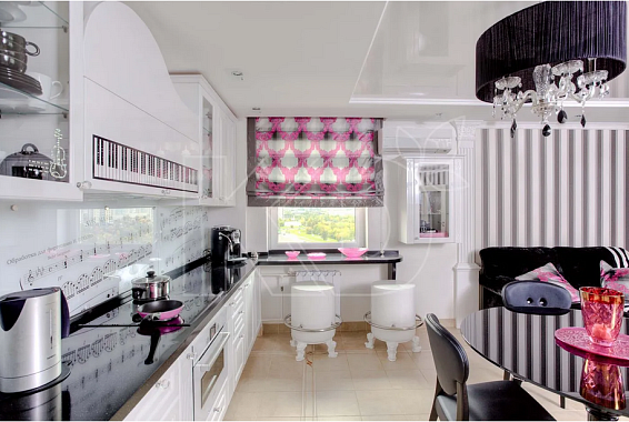 Белый цвет вашей кухни – это не замершая на года статика, это творческая динамика, позволяющая постоянно менять облик вашей кухни. Достаточно повесить другие шторы, купить новые тарелки, поменять кухонный фартук, и это будет уже совершенно другой интерьер, с иным характером и смыслом. Блюда, созданные на обновленной кухне, будут обладать новым вкусом, нести иные ощущения, дарить другие эмоции.