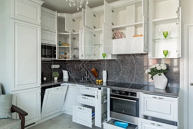 Если вы решили поменять гарнитур, займитесь этим вопросом заранее. Лучше всего заказать кухню от производителя. В этом случае специалист разработает для вас дизайн-проект по индивидуальным замерам, учитывая наличие ниш, выступов и другие архитектурные особенности.